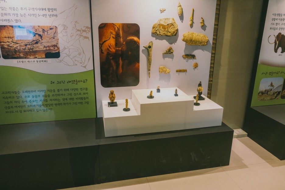 석장리 박물관 안에는 원시인의 해골과, 벽화, 그리고 미술책에서 자주 보던 조각품 까지 다양하게 전시 되어있다.